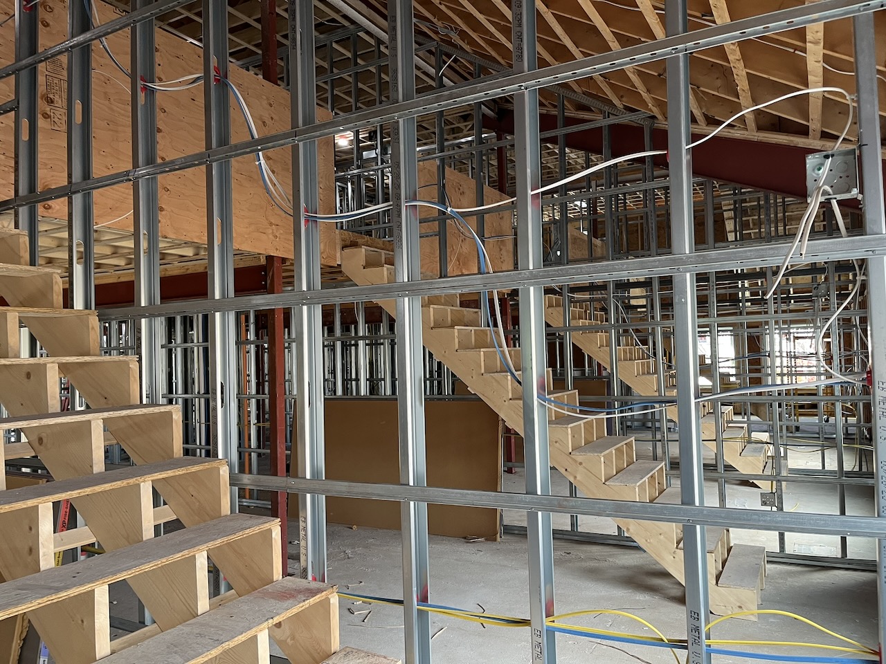 A landmark 38,000 square foot building in Conway, New Hampshire that originally was a retail building. Recently it was a headquarters for a electric medical records software company. With most of their staff shifting to remote work settings, the building became available. A local family that owns a large amount of retail and hospitality resources pursued transforming the building to 24 apartments along with self storage and a new location for their administrative offices. The apartments are hoped to allow for more affordable abodes by having a smaller 750 square or so footprint. These single bedroom units have the bedrooms mostly situated in second floor lofts. This was a bit like designing a 38,000 square foot watch so as to get the most amount of living space to fit within the existing footprint. The size and complexity of the original design was quite a thing to measure and create the 3D model and drawings for. It was quite a mind twister. It was cool to only need four dormers with regards to the exterior modifications.