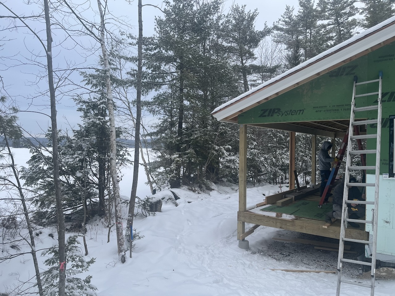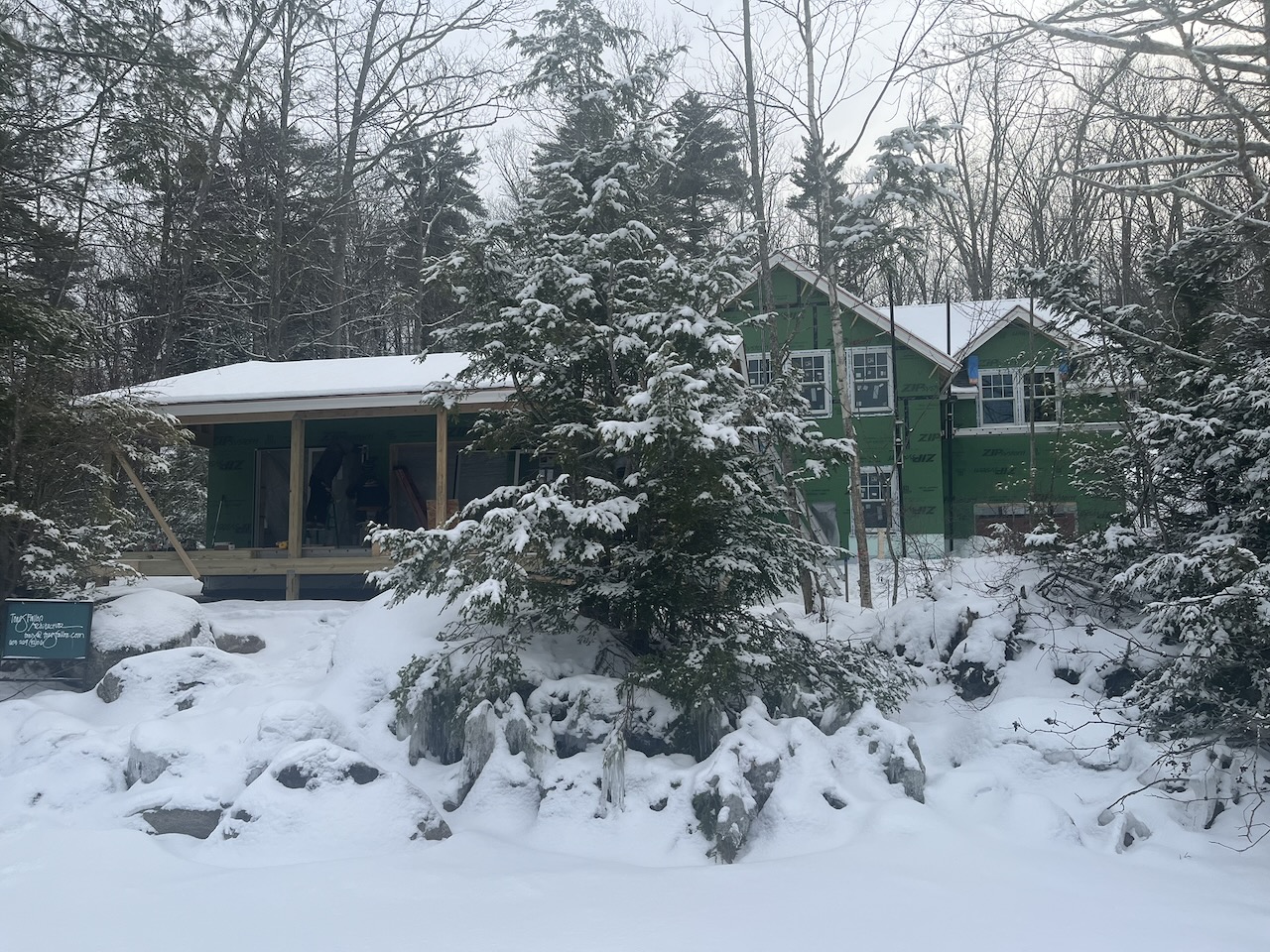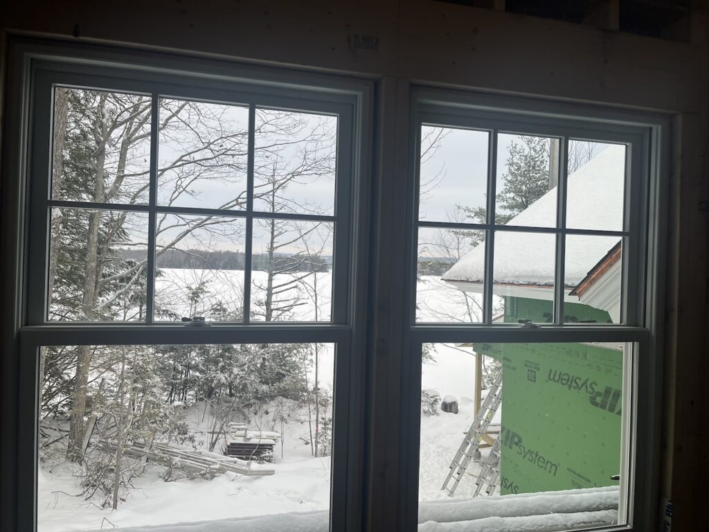 A long term friend’s son and wife reached to me when they had an opportunity to build a lake house near their parents. While many homes on lakes have walkout basements with the living space a story up, this couple opted for keeping the living space closer to the grade and lake. A full width porch with Kitchen, Dining, and Living is a one story portion closer to the water built in the area of the original cottage. Further back bedrooms and a garage step up as does the land. The owners are keen on environmental and clean environ and I learned something new with some of the insulation being real wool from New Zealand. Up to the first floor deck is Insulated Concrete forms which are a great energy saver too.
