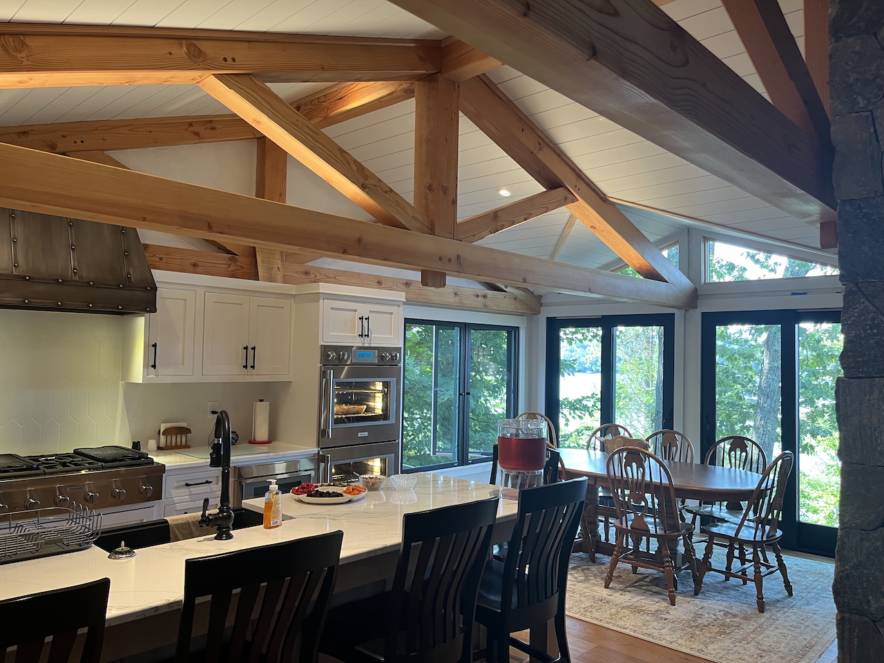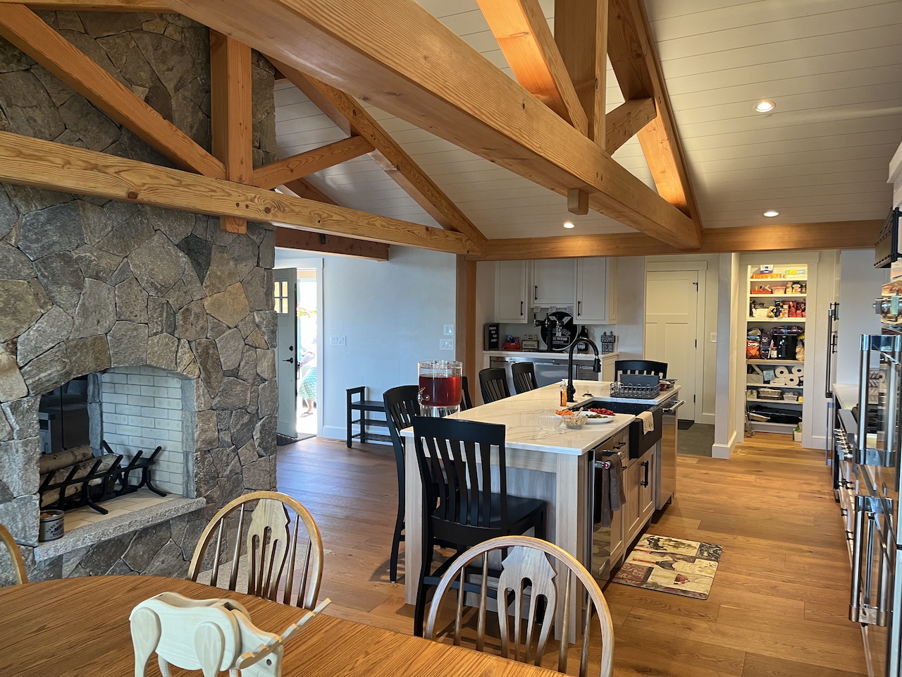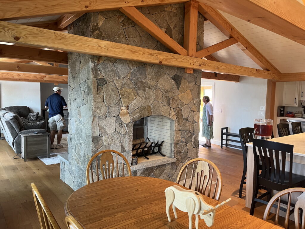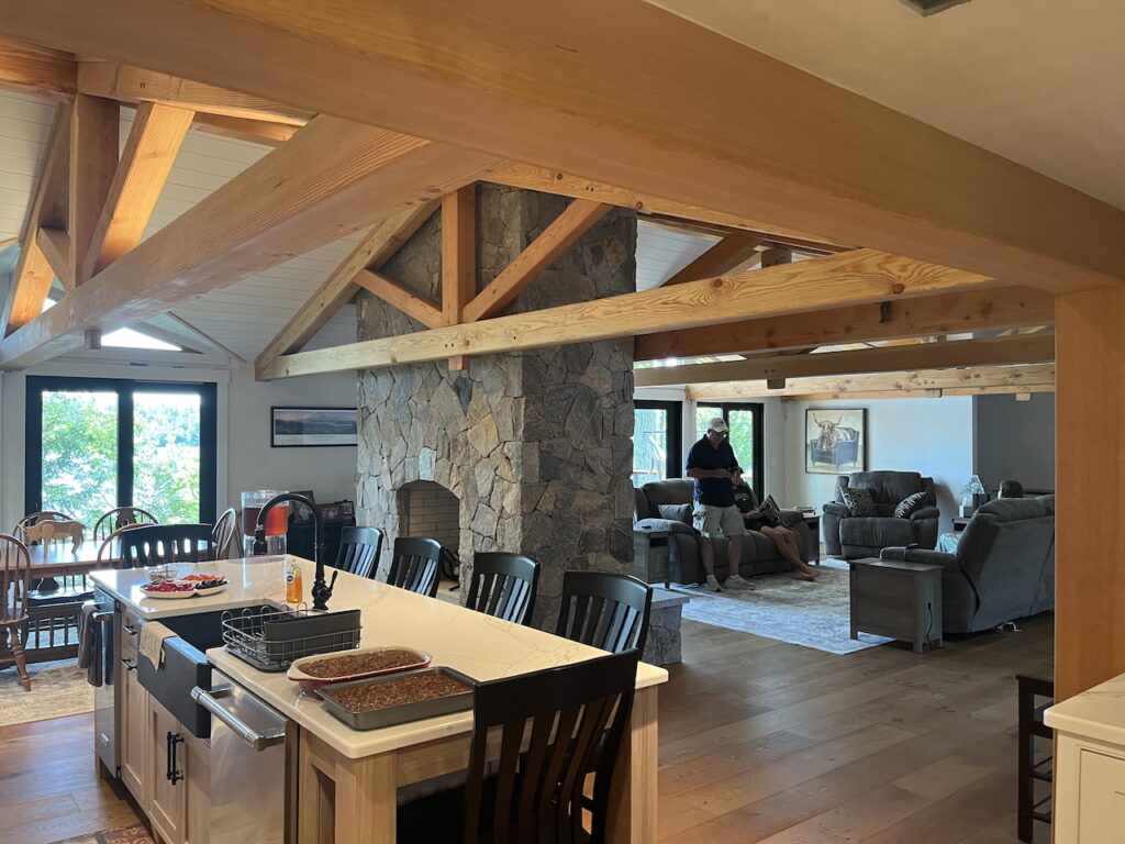 OK, so I heard from a fellow parishioner about his extended family lakefront house that one of the next generation had now bought from him and wanted to redo the kitchen. Well, we did a lot more than the kitchen with new wood trusses and gables facing the lake and fireplaces and lots of fun. The design committee approves!