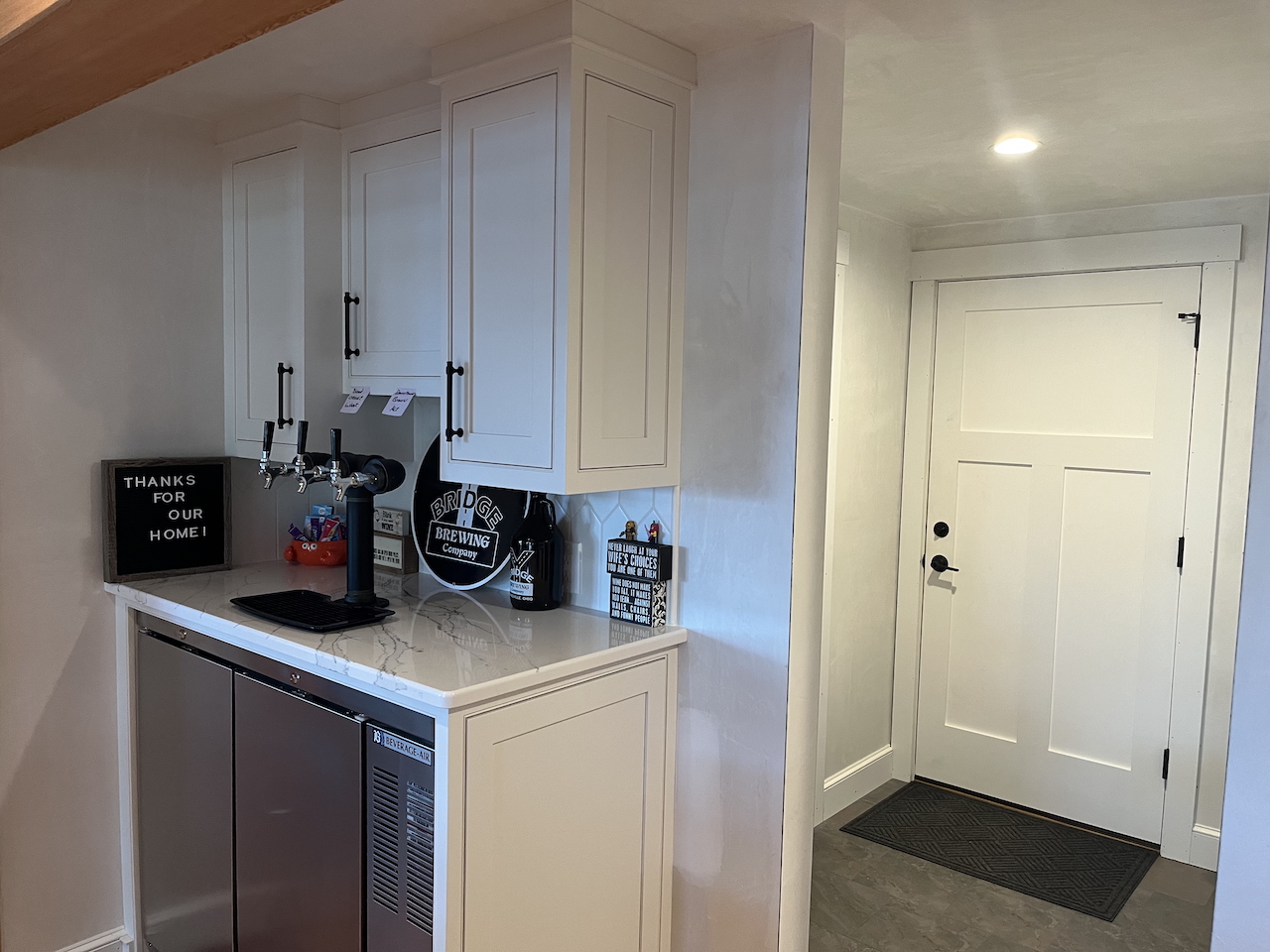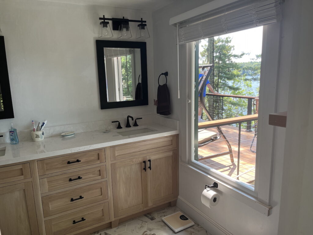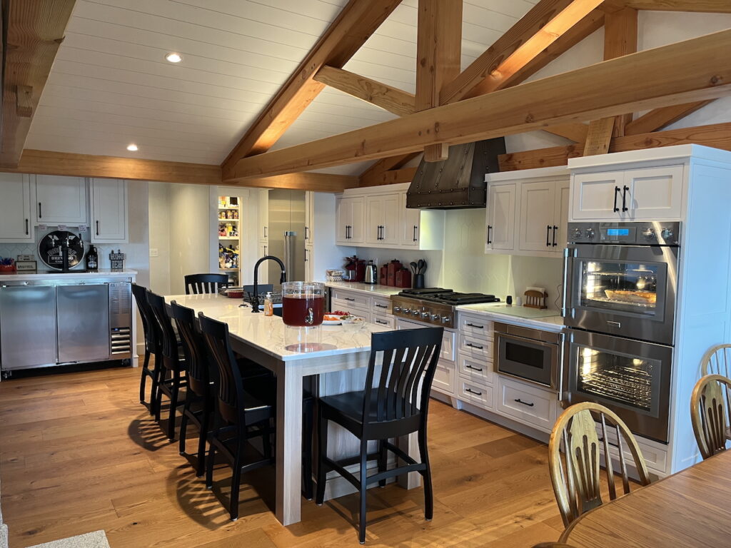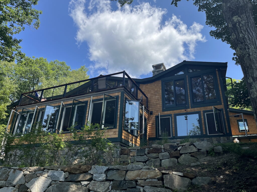 OK, so I heard from a fellow parishioner about his extended family lakefront house that one of the next generation had now bought from him and wanted to redo the kitchen. Well, we did a lot more than the kitchen with new wood trusses and gables facing the lake and fireplaces and lots of fun. The design committee approves!